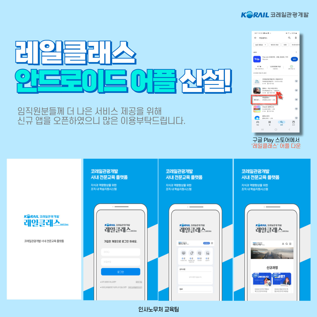 구글 Play 스토어에서 '레일클래스' 어플(앱)을 다운 받으시면 됩니다.